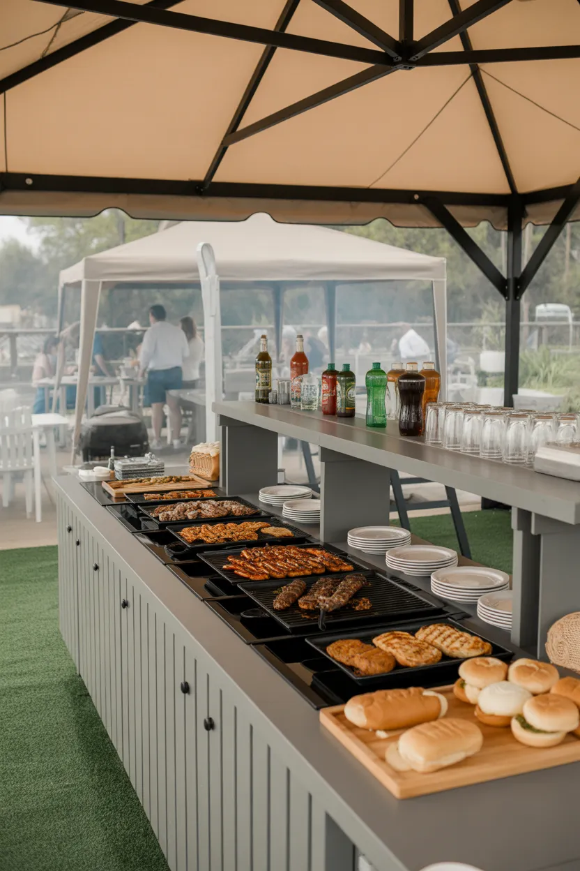 A BBQ gazebo with bar seating makes hosting feel more social. Guests can sit nearby, chat while you cook, and enjoy drinks without crowding the grill. That little separation helps a lot. People stay involved without turning your cooking zone into a traffic jam.