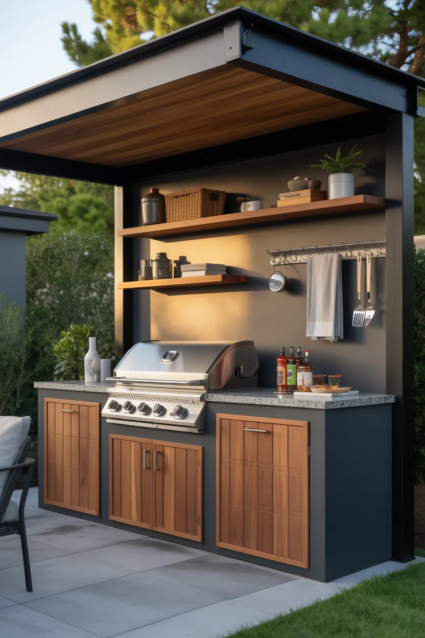 Choose materials that can handle heat, smoke, and regular outdoor use. Wood looks warm and classic, while metal feels cleaner and more modern. Both can work beautifully when the design gives the grill enough breathing room.