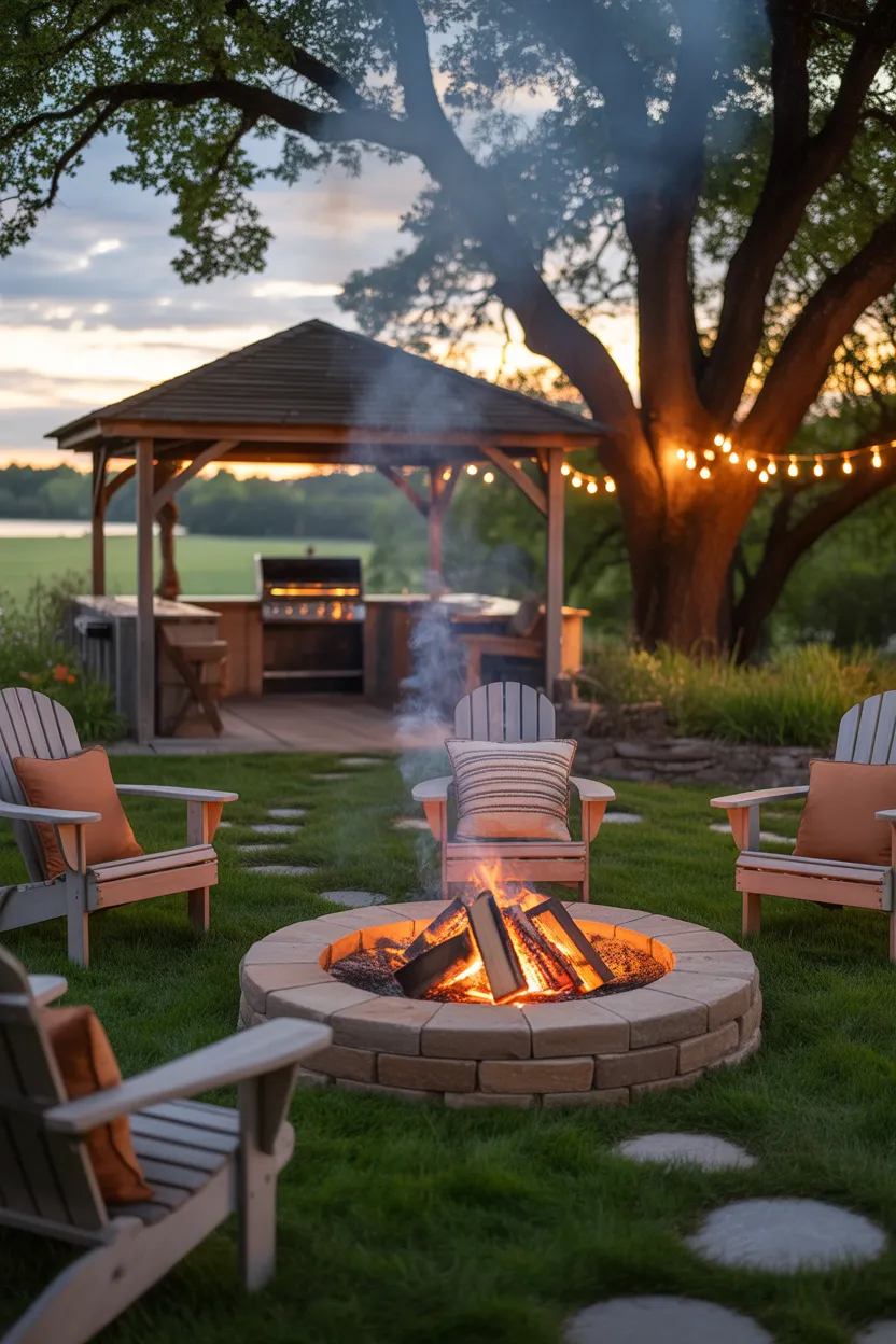 A fire pit near the BBQ gazebo gives your hosting area a second destination. Guests can enjoy the meal under the gazebo, then move to the fire pit for drinks, dessert, or late night conversation.