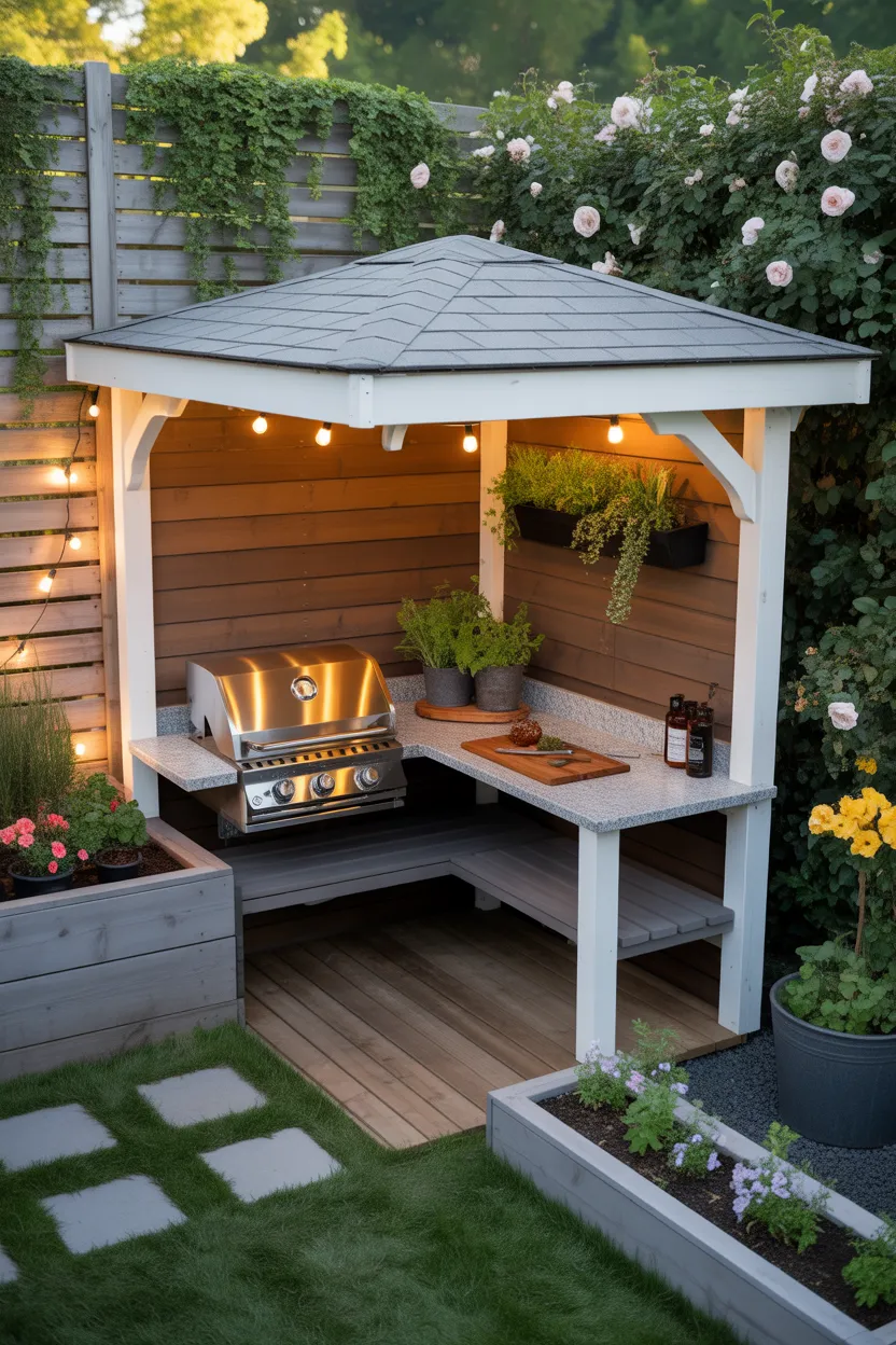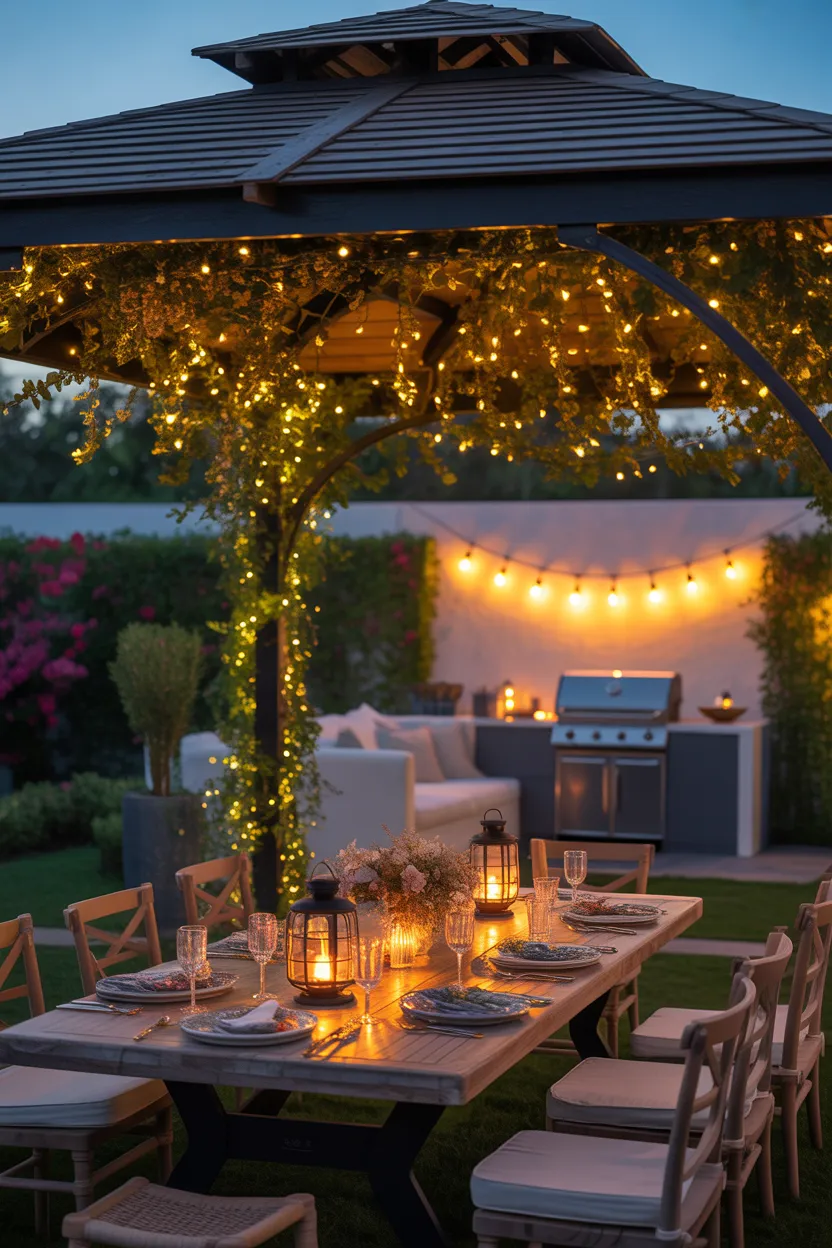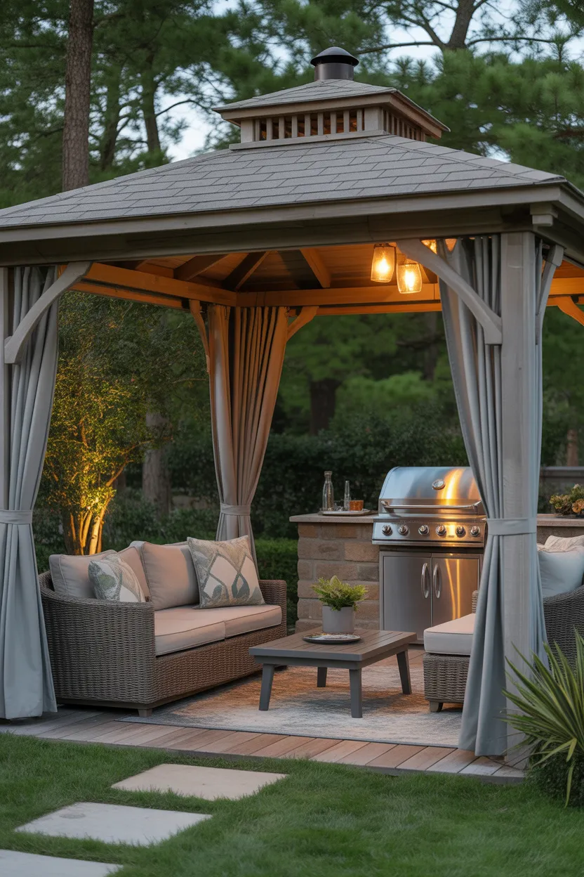 A BBQ area should look good after sunset too. String lights instantly make a gazebo feel warmer, softer, and more inviting. This is one of the easiest upgrades you can make, and the payoff is huge.