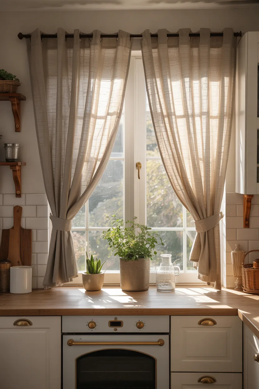 11. Café Curtains That Add Softness Without Blocking Light
