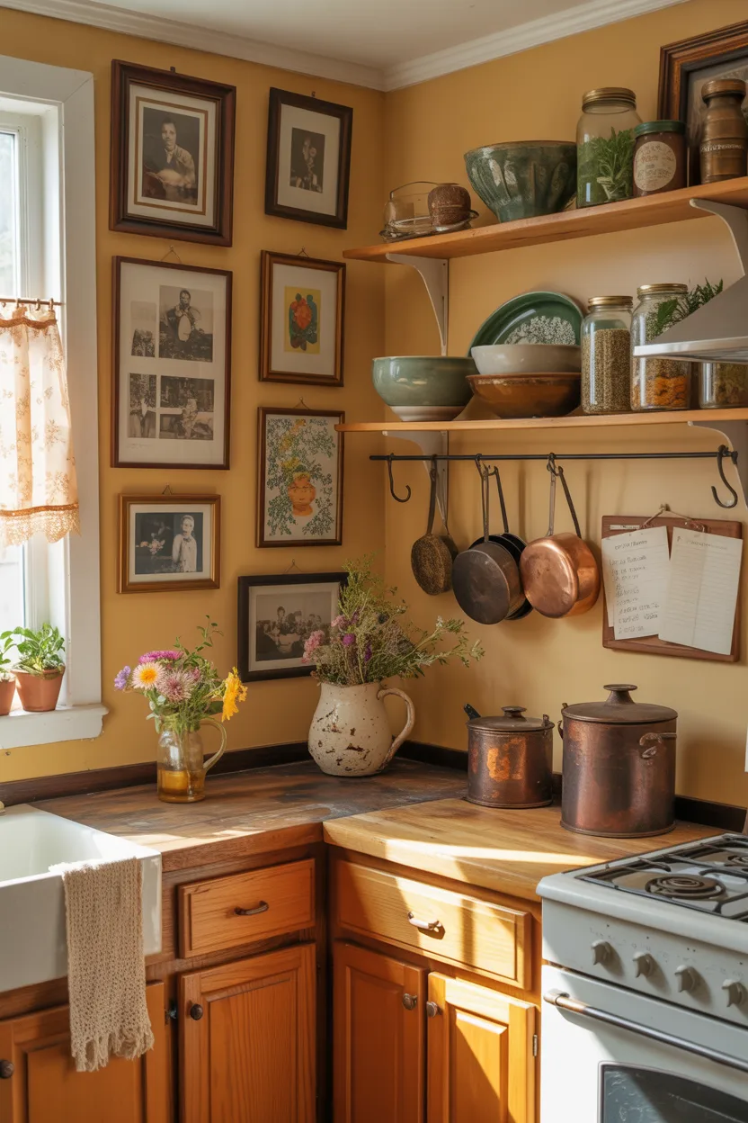 The coziest kitchens always feel personal. They include things that mean something to the people who live there. Framed recipe cards, handmade pottery, vintage finds, family photos, travel pieces, or a favorite serving bowl can all add warmth in a deeper way than trendy décor ever will.