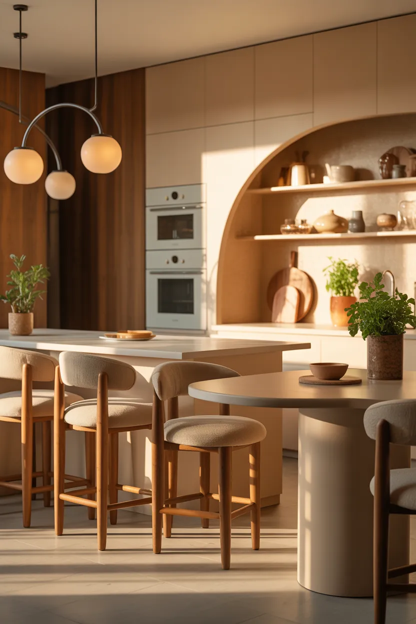 You can add rounded forms through bar stools, pendant lights, mirrors, table edges, shelves, or even curved decorative bowls. A little goes a long way. You do not need to turn the kitchen into a circle-themed experiment.
