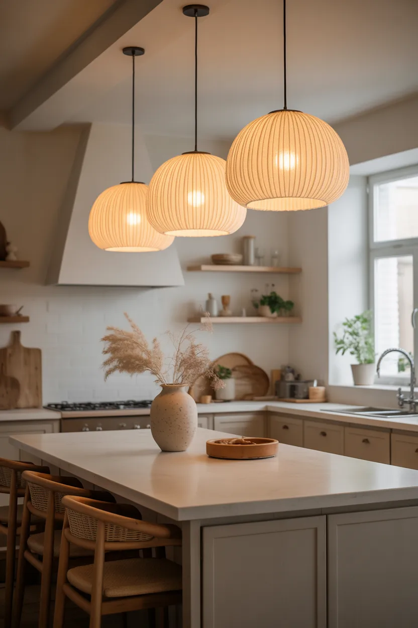 Pendant lights do more than brighten an island. They set the mood for the whole room. Soft pendant lights with warm bulbs, rounded shapes, or textured materials help the kitchen feel gentler and more welcoming.
