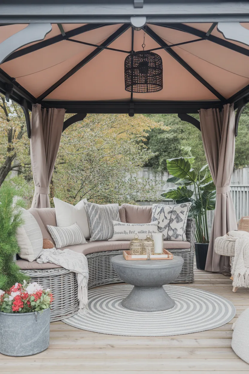 22. Style the Gazebo Deck With Soft Decor and Seasonal Touches