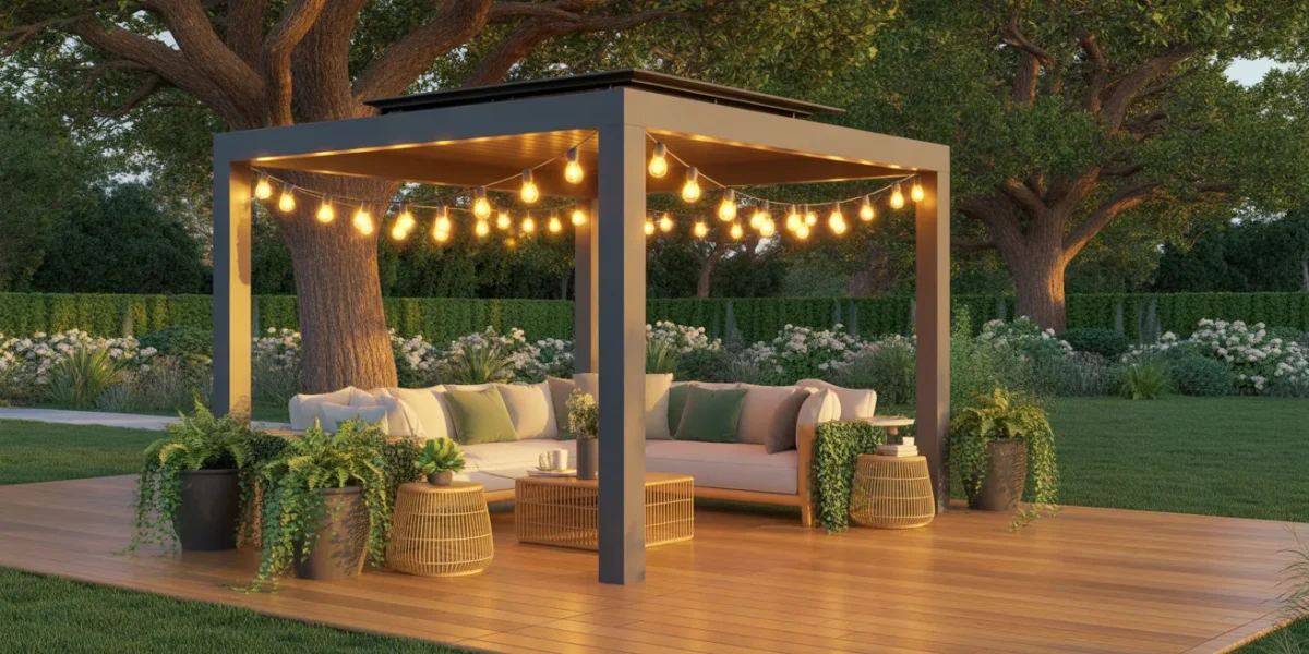 This works well whether your style feels rustic, modern, or classic. Warm lights almost always improve the space. They also make the gazebo more usable in the evening, which means you get more value out of the setup.