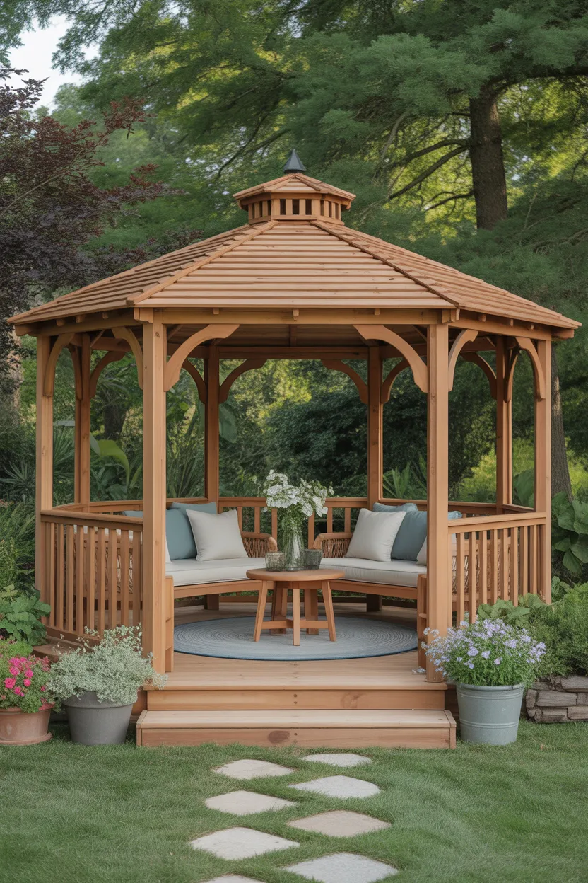 3. Pair Natural Wood Tones With a Classic Gazebo
