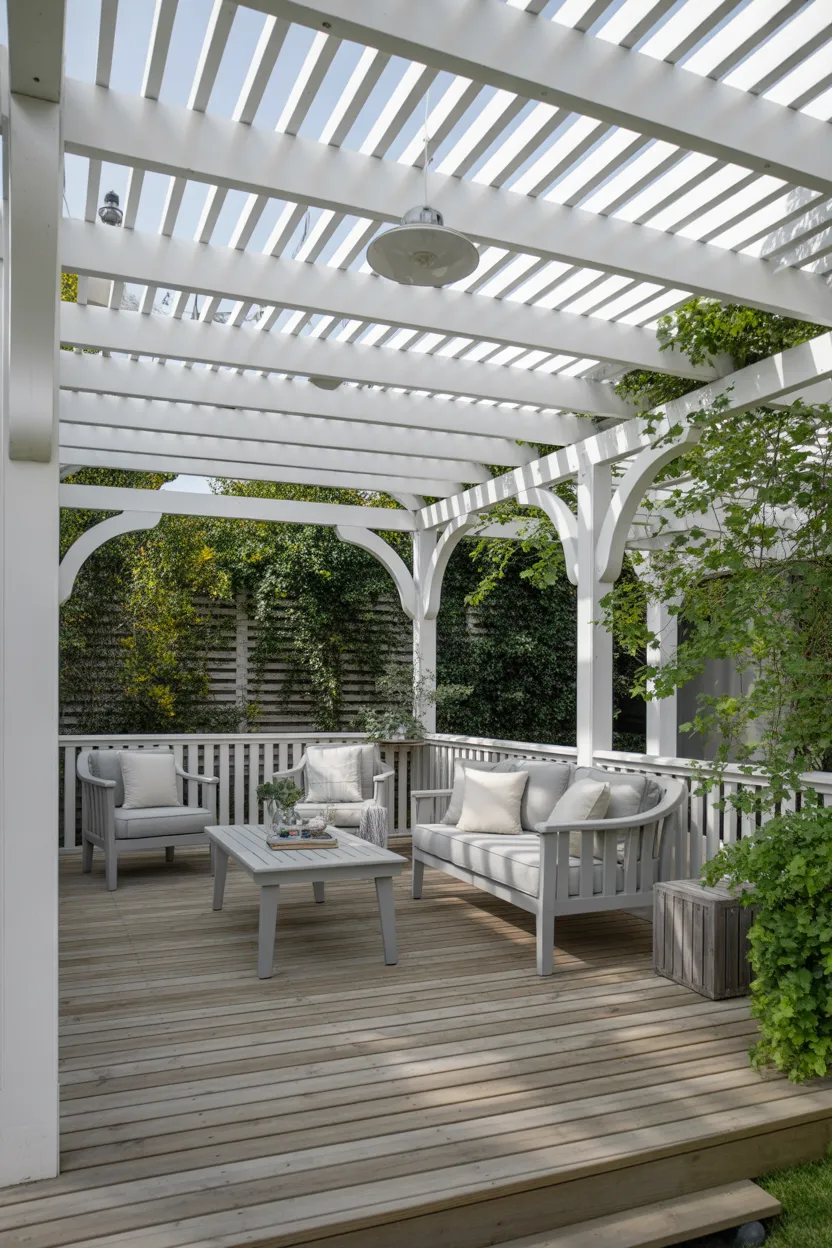 I think this style looks especially good in bright backyards where you still want some shade but do not want to lose that open sky feeling. It gives the deck architectural shape while keeping the overall vibe relaxed. That makes it feel stylish without getting too formal.
