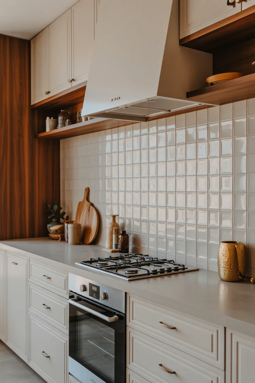 Zellige tile works especially well for backsplashes because it catches light in a soft, uneven way. Handmade ceramic tiles also add that same rich surface detail. When the rest of the kitchen looks simple, textured tile keeps the design from feeling boring.