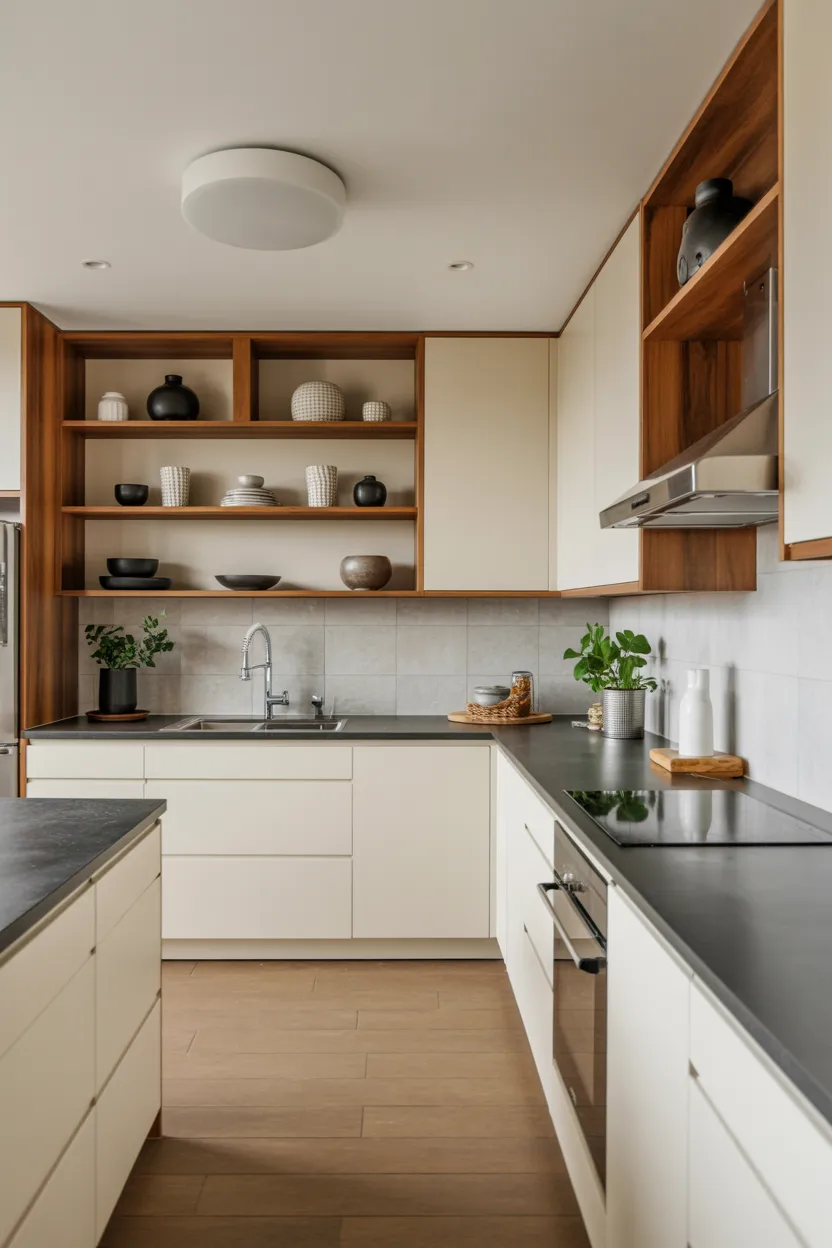 A little openness helps a kitchen feel lighter. Open shelving works best as an accent, not a full storage plan. Unless you enjoy dusting and rearranging bowls every weekend, moderation helps.
