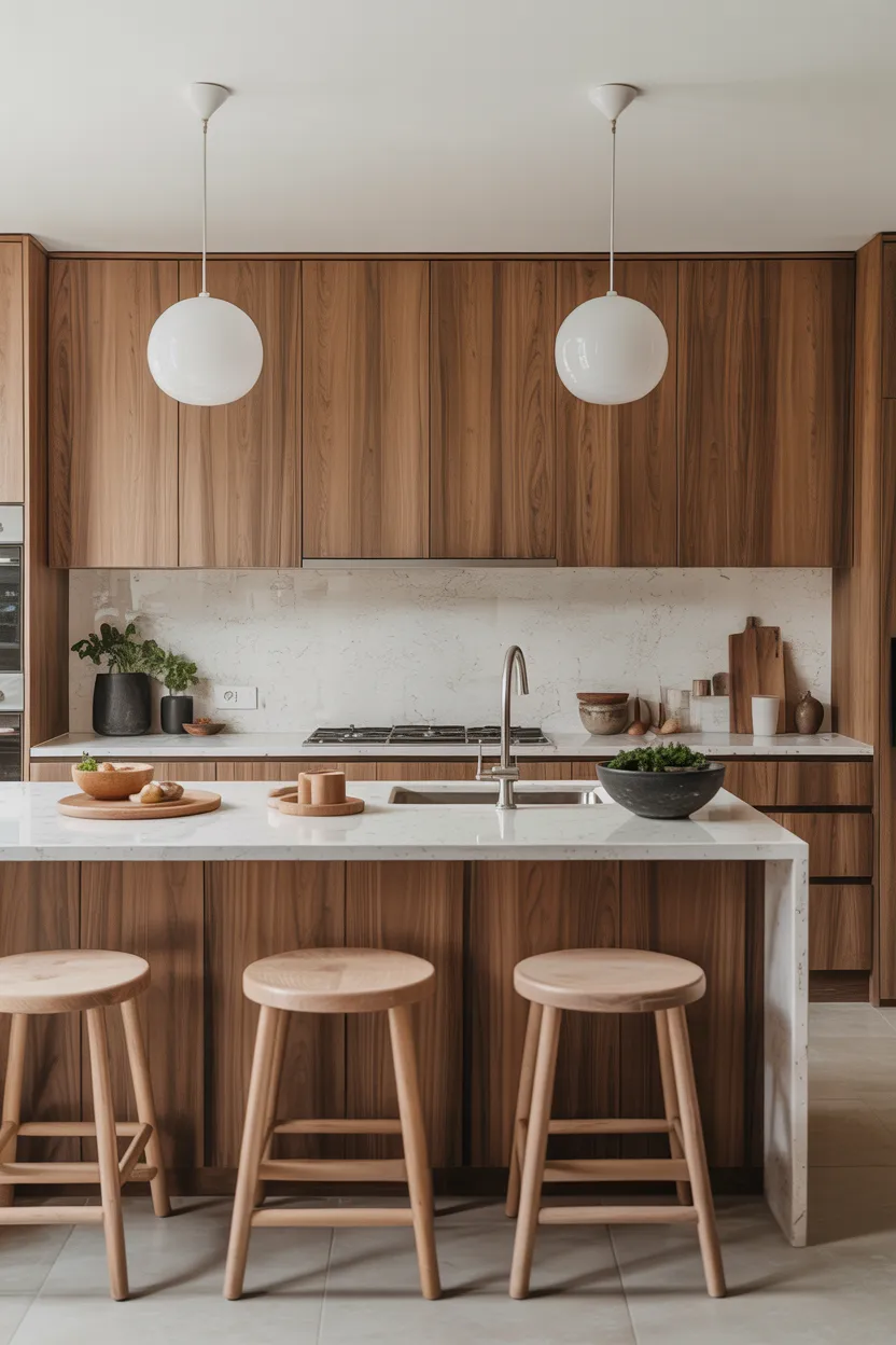 Stone and wood make an excellent team in modern kitchens. Stone adds polish and structure, while wood adds warmth and texture. Put them together and the room feels both elegant and easy to live in.