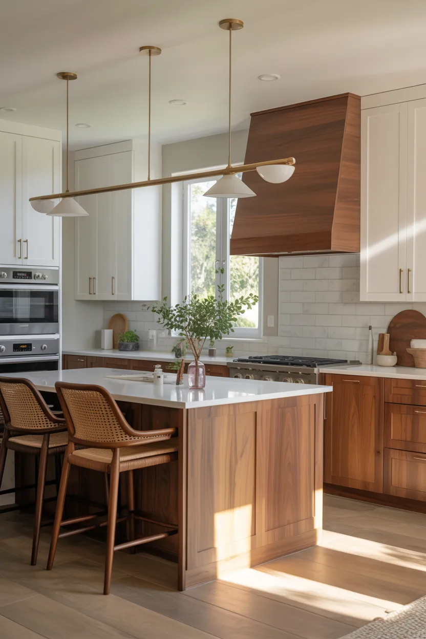 If you want the room to feel modern but still welcoming, this idea does a lot of heavy lifting. Ever notice how one wood detail can make a whole kitchen feel more grounded? That is exactly why this works so well.