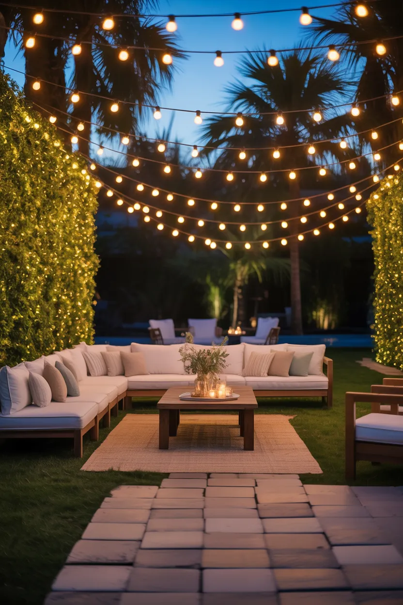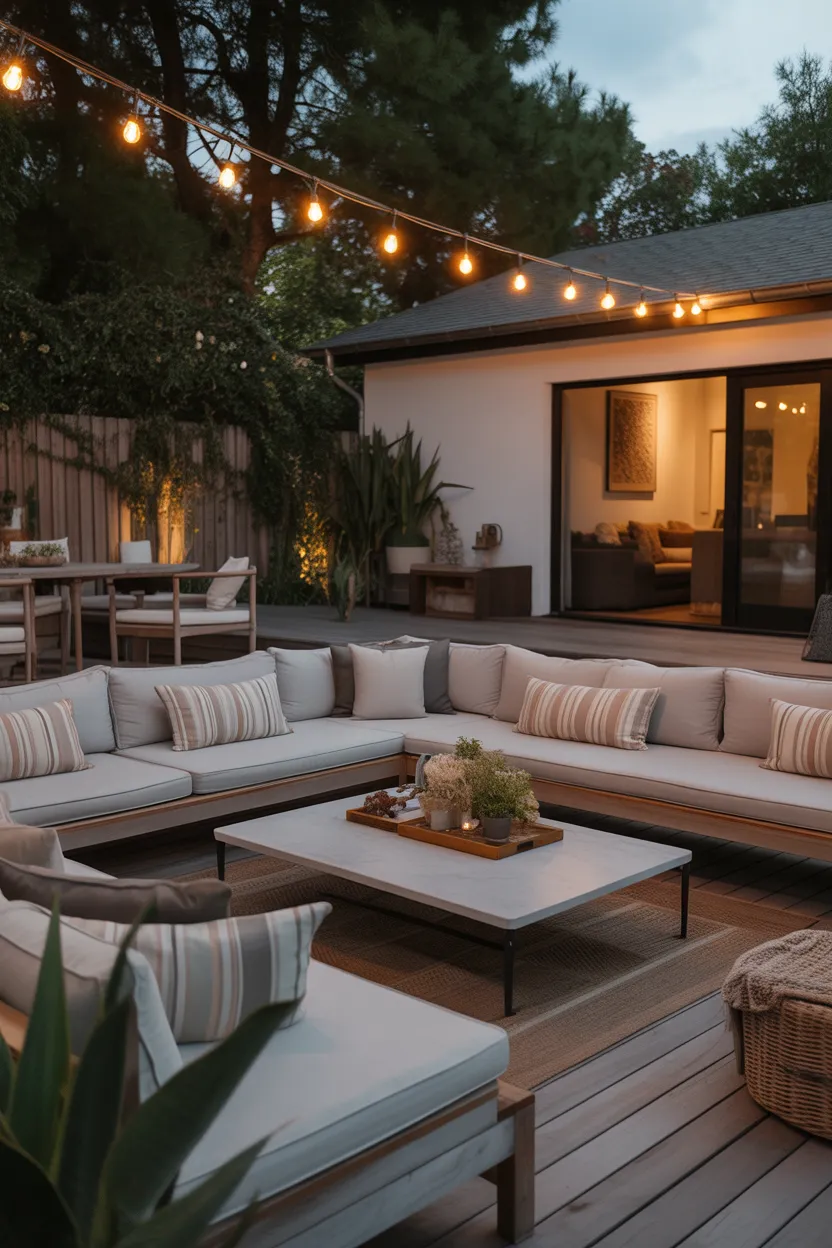 String lights might be the easiest upgrade on this list, but they also deliver one of the biggest payoffs. The second those lights switch on, your outdoor lounge starts feeling warm, cozy, and intentionally styled. It is almost unfair how much better everything looks under soft evening lighting.