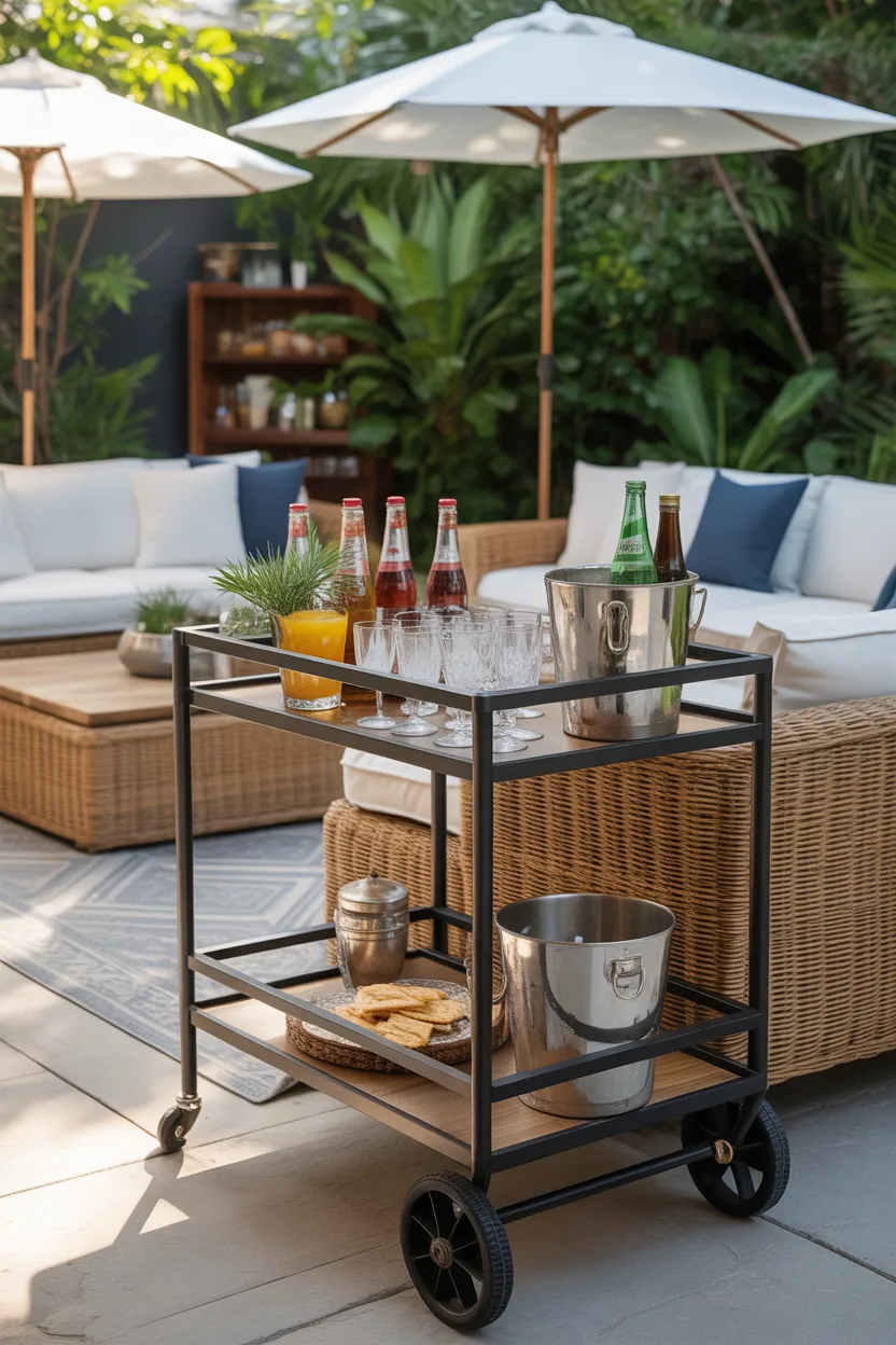6. Add an Outdoor Bar Cart for Easy Hosting