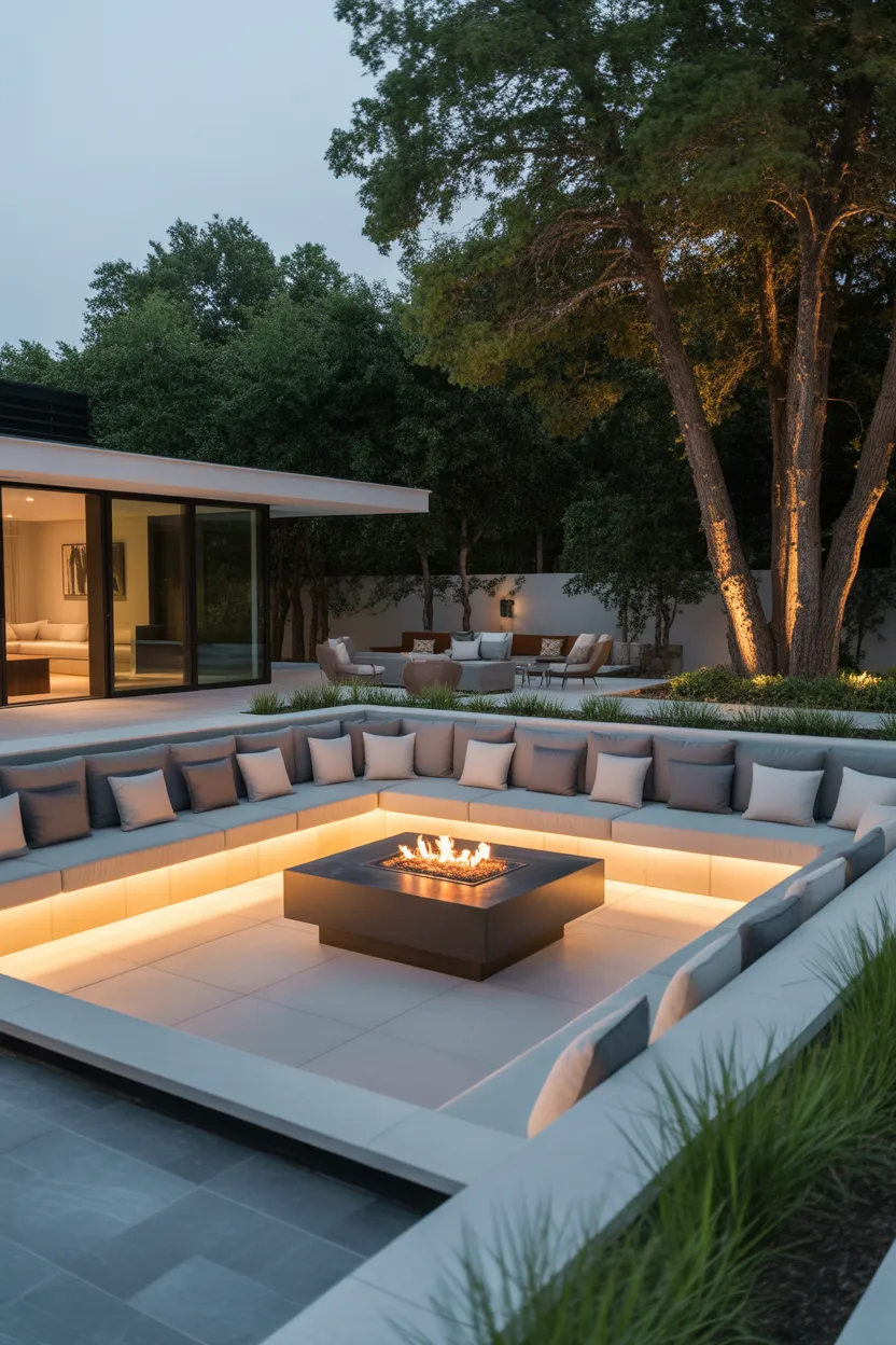 A true sunken lounge takes more planning than a simple furniture arrangement, but the final result can look incredible. Built-in benches, thick seat cushions, low tables, and a central fire feature can turn the whole area into a resort-style hangout spot. It feels cozy because the lower seating creates a sheltered, intimate mood.