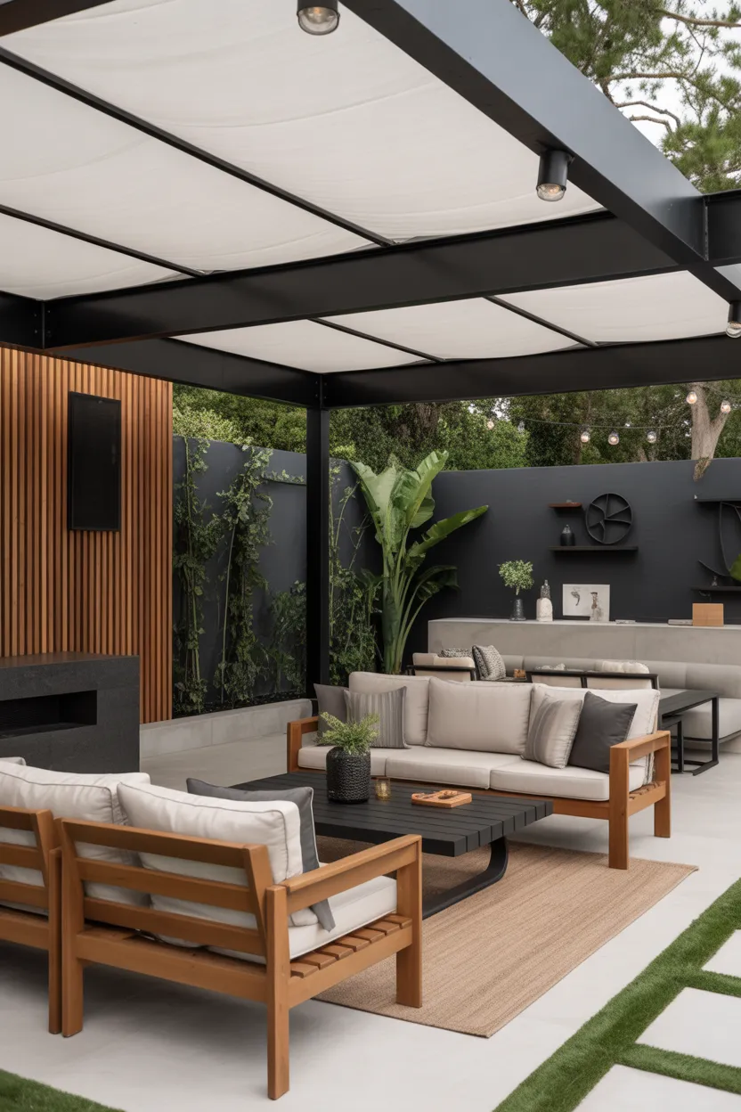 I love pergolas because they add height and style without making the space feel closed off. They create just enough shape to make your lounge look designed. You can leave the top open for an airy feel, or you can dress it up with curtains, lights, or climbing plants if you want more softness and personality.