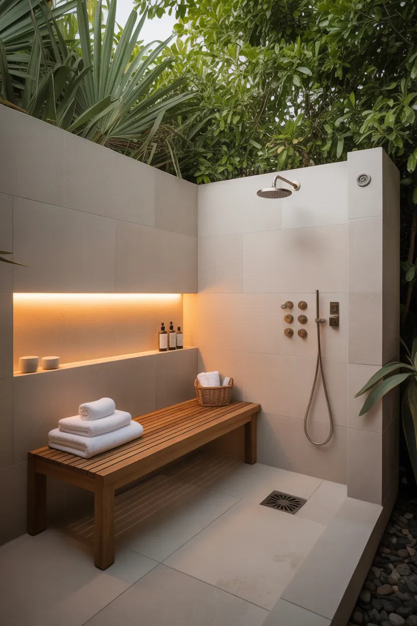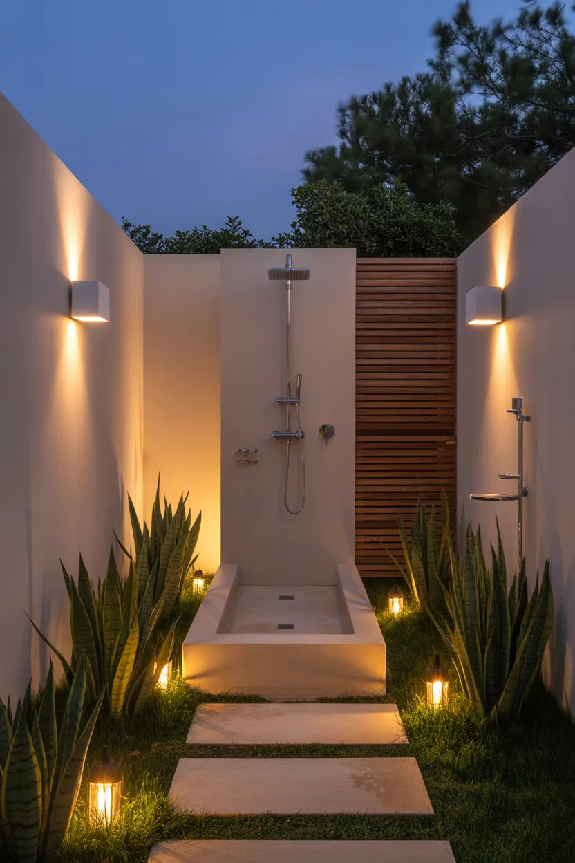 21. Spa-Style Outdoor Shower With Soft Lighting