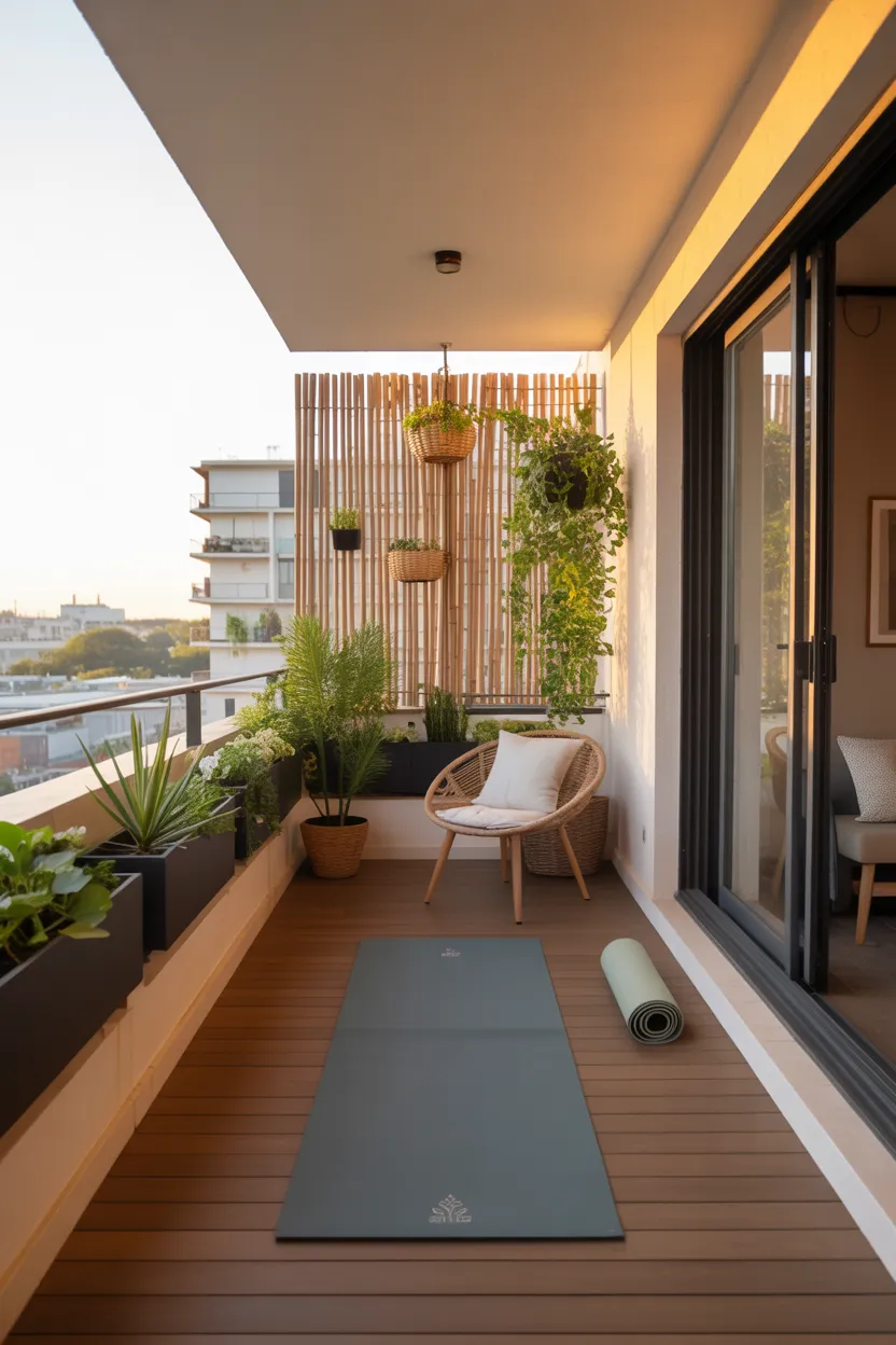 This approach keeps the area flexible. You bring out the mat, cushions, lanterns, or privacy screen when you want to practice, then store everything neatly afterward. It is simple, practical, and renter-friendly.