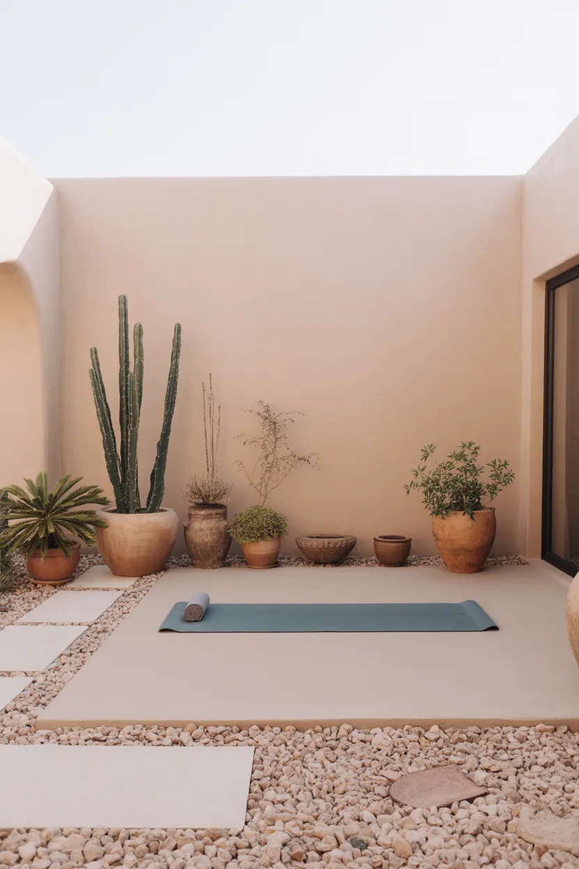 I love this look because it feels calm without needing much decoration. The pavers define the mat area, while the gravel around them softens the edges and keeps everything looking tidy. It feels designed, but not fussy.
