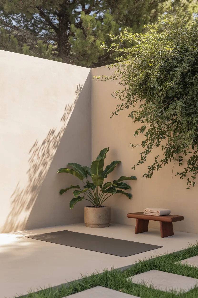 A pergola can completely change the mood of an outdoor yoga area. It adds shape, soft shade, and just enough enclosure to make the space feel cozy without feeling boxed in. That balance matters because yoga spaces should feel protected, not trapped.