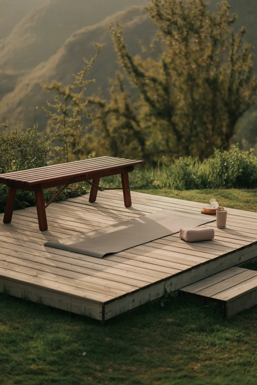 I really like wood for yoga spaces because it feels warmer than concrete and softer visually than stone. It makes the whole setup feel grounded. Ever notice how some spaces instantly make you breathe deeper? Natural wood tends to do that without trying too hard.