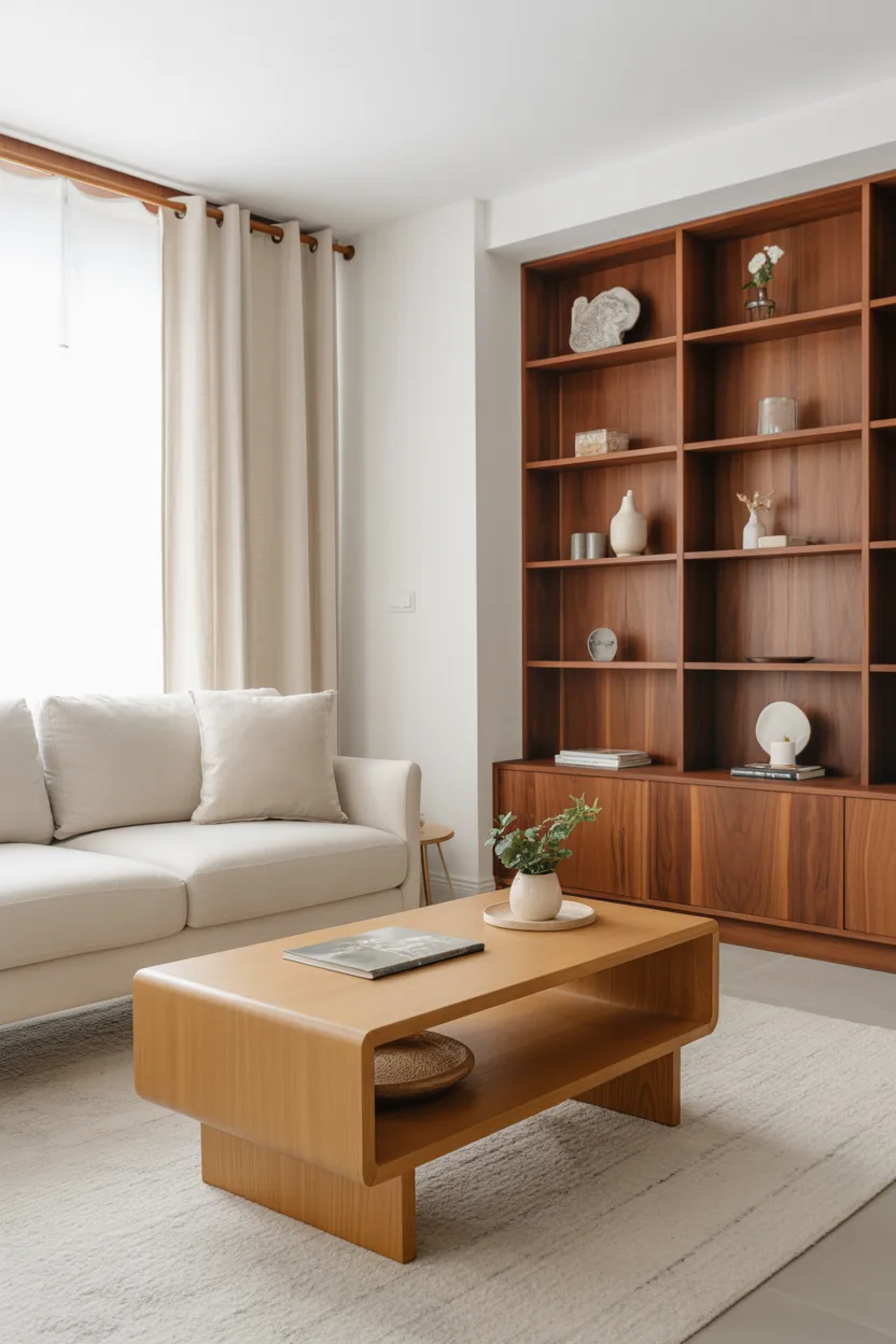 Wood and white is one of the most timeless and effective combinations in interior design, and it works especially well in a bright white living room. Warm wood tones like oak, walnut, and ash add organic warmth that prevents the room from feeling too cold or sterile. A wooden coffee table, shelving unit, or console table introduces natural texture and color that grounds the entire white palette and gives the eye something warm and grounding to rest on.