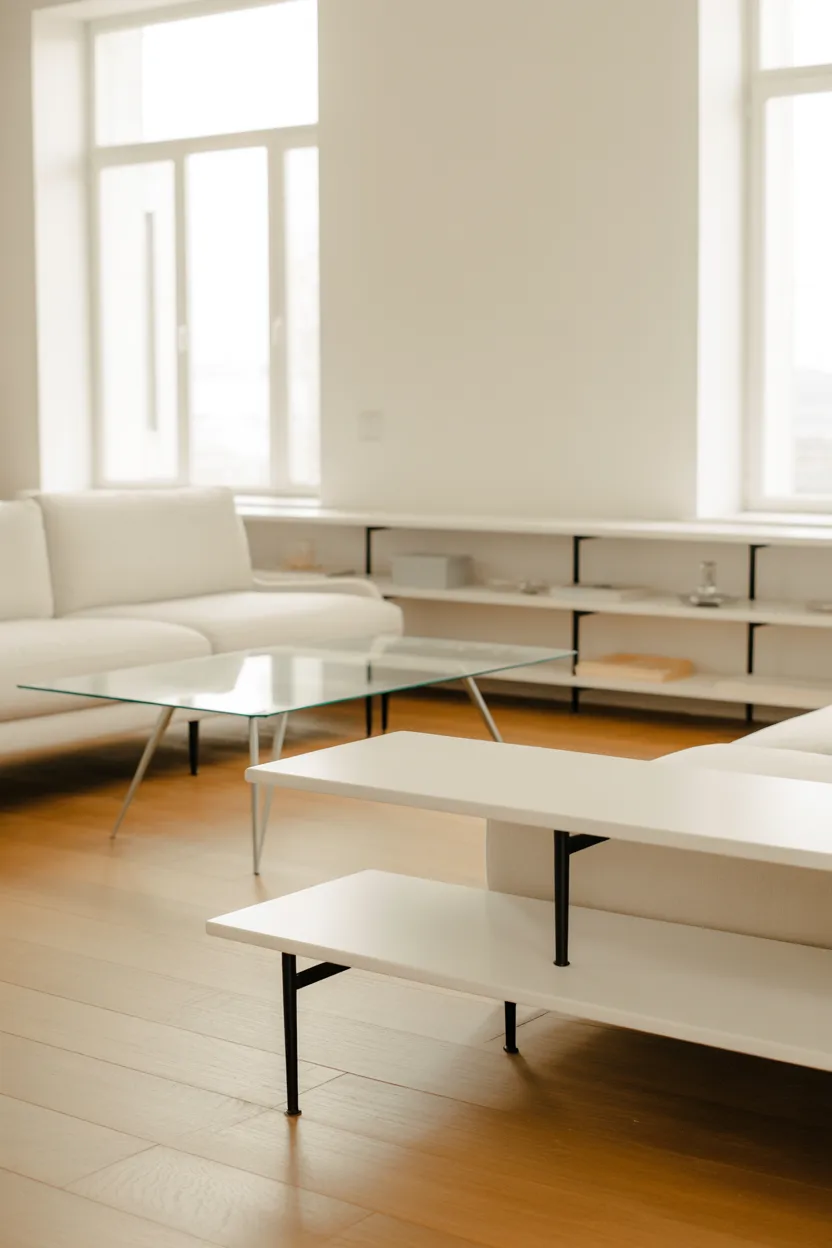 High-backed, chunky furniture in a white living room can make the space feel heavy and crowded even when there is genuinely plenty of square footage to work with. Low-profile furniture keeps the sightlines open and allows the white walls and ceilings to breathe properly, which directly supports the bright and elegant quality you are working toward throughout the room. The visual lightness of low furniture makes everything feel more spacious and considered.