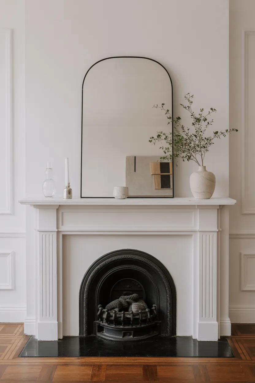 Pair a white fireplace with a large mirror above the mantle and simple decorative objects in neutral tones on the shelf for a complete and considered focal point. The result is a moment in the room that feels genuinely elegant and timeless regardless of the season or how the rest of the space changes over time. If your fireplace currently has a dated or dark surround, rendering or replacing it in white is one of the single highest-return updates you can make to a white living room.