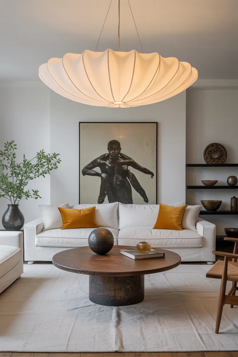 Choose a fixture that suits the overall scale of your room because proportion matters enormously with ceiling lights in open, bright spaces. A fixture that is too small in a generous white room disappears entirely and looks like an afterthought. One that is correctly scaled becomes the crown of the entire space and ties everything below it together in a way that makes the room feel complete and fully realized.