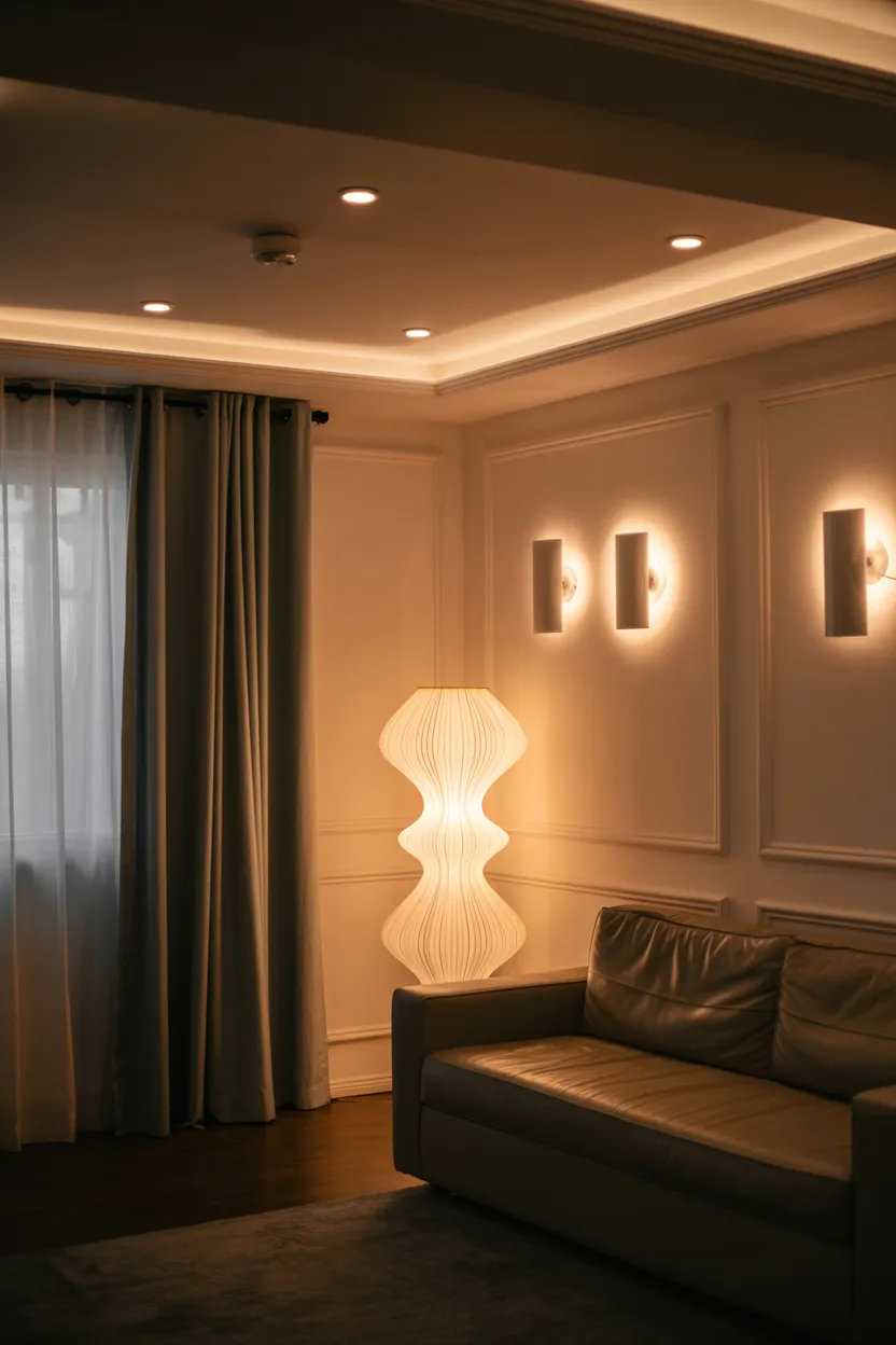 • Task lighting through floor lamps or table lamps near seating areas for functional light