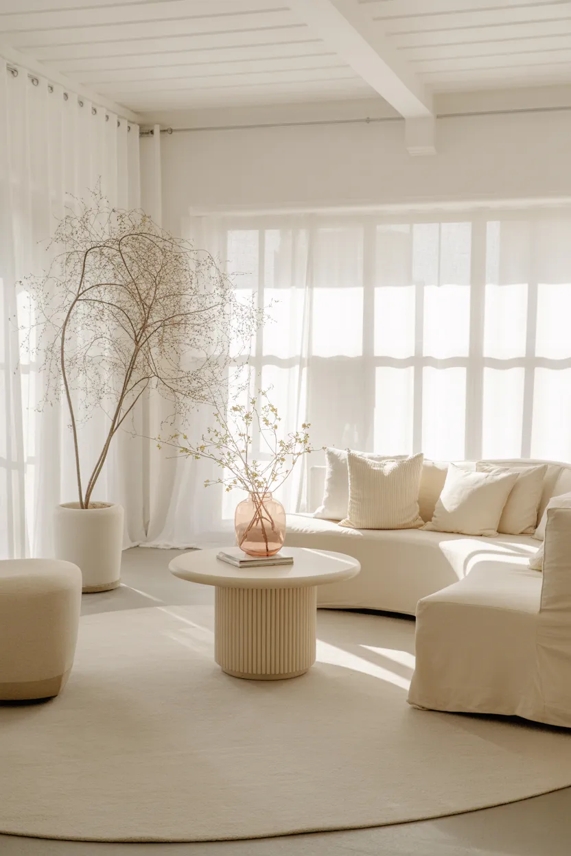 Avoid anything that blocks or unnecessarily filters your natural light. Heavy drapes in dark colors or tightly woven materials that restrict light defeat the entire purpose of building a bright white living room and work directly against every other effort you make in the space. Let the light in as generously as your privacy situation allows and let it do the heavy lifting for you throughout the day.