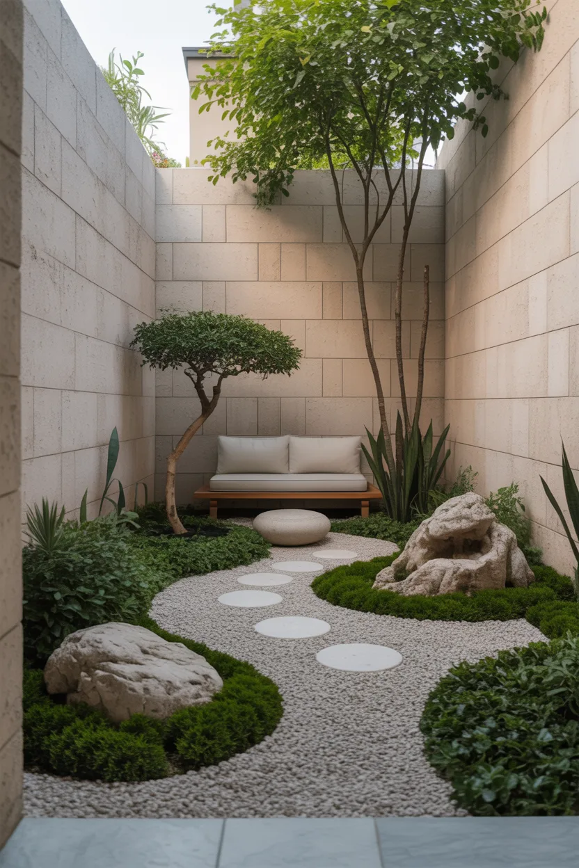 A courtyard zen garden works especially well in urban homes where you want an outdoor retreat without needing a huge backyard. Even a modest area can feel special when the design stays intentional.