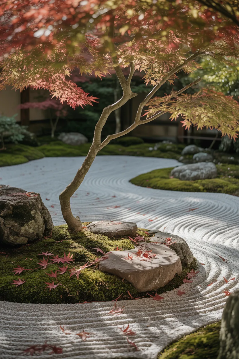 Every zen garden feels stronger when it has one clear focal point. That could be a maple tree, a large stone, a lantern, a water basin, or even a perfectly placed bench. Once you know what the star of the space is, the rest of the design gets easier.