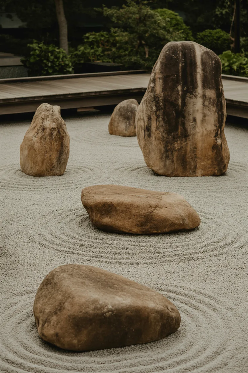 Large rocks bring structure and presence to a zen garden. They anchor the design and make the space feel timeless, as if it has always looked that way. Small decorative pieces often feel busy, but a well placed rock feels calm and confident.