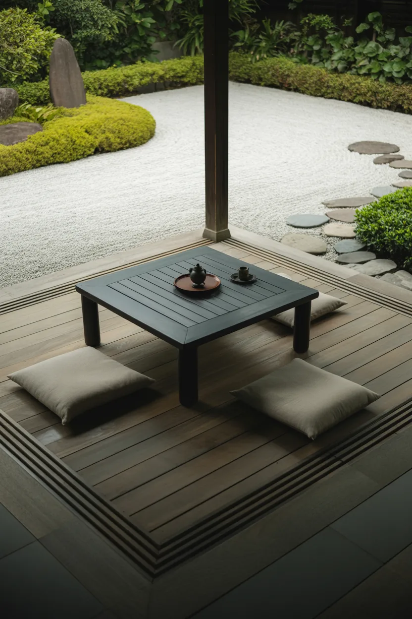 A tea corner turns your zen garden into a place you actually use instead of just admire from a window. That makes the whole space more personal and more meaningful. Even a small setup can create a lovely quiet retreat.