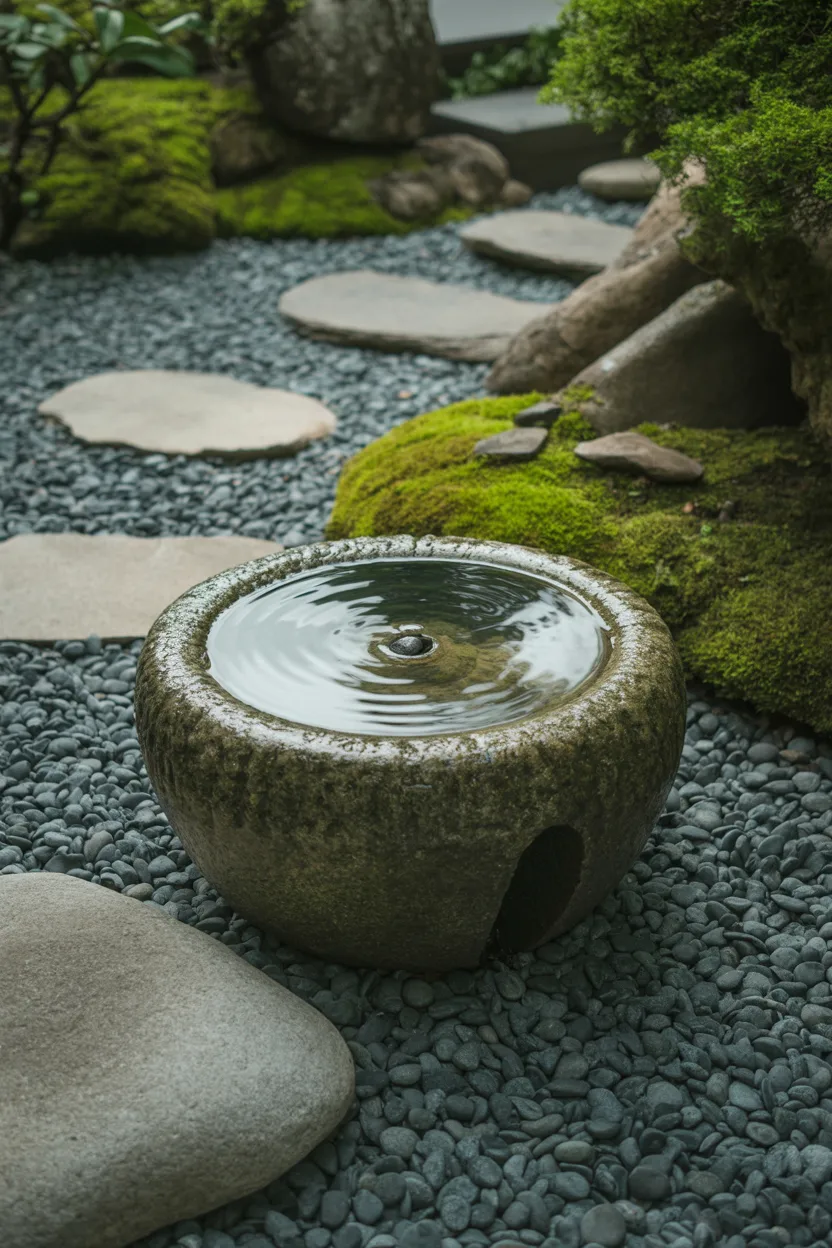 Choose a stone or concrete basin with a simple form and place it near rocks, moss, or a path. You can keep it still or add a gentle water source if you want soft sound. Just keep the scale small and the design understated.